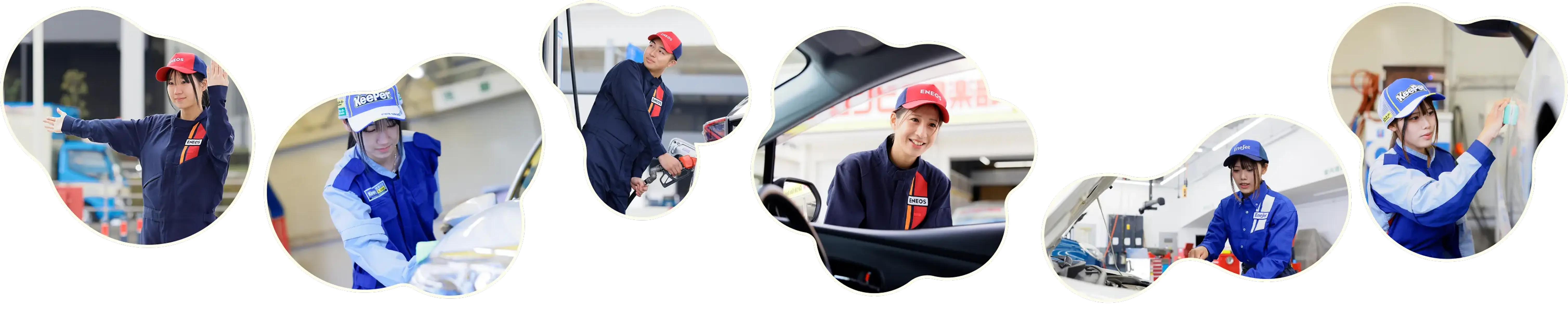 ENEOSウイングは、主に営業職・事務職・SS職の3つに分かれます。その中でも「SS職」の仕事は、全国に展開するENEOSウイングのSS(サービスステーション)で、給油や洗車にとどまらず、お客様一人ひとりのカーライフをサポートする「トータルカーライフアドバイザー」として、様々な経験を積むことができます。